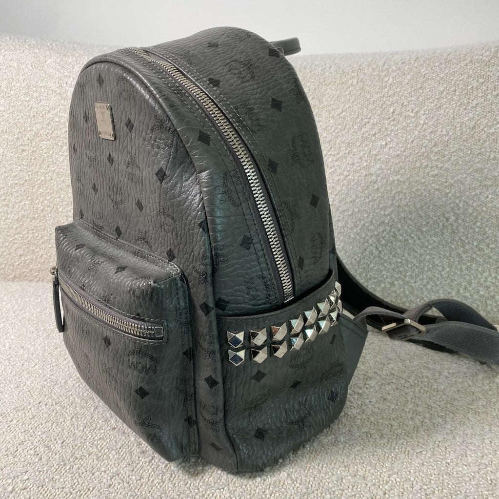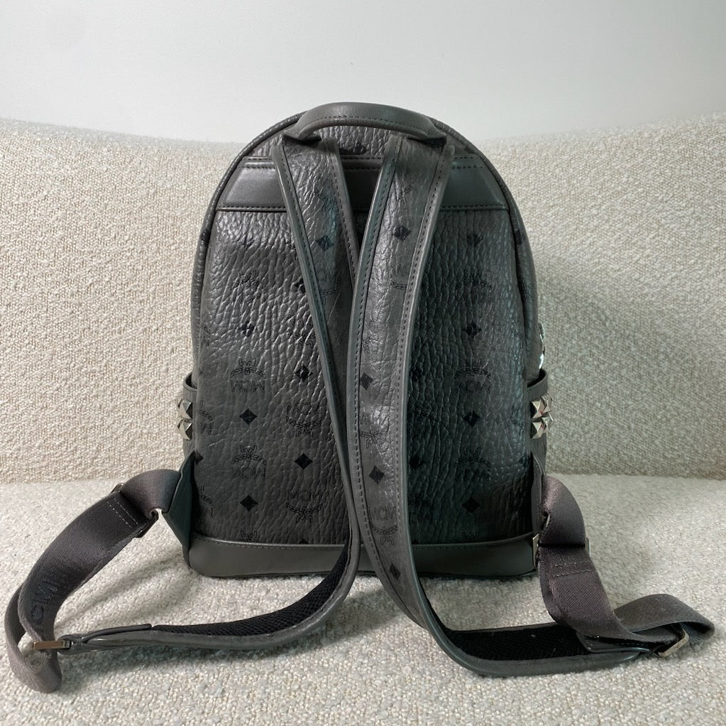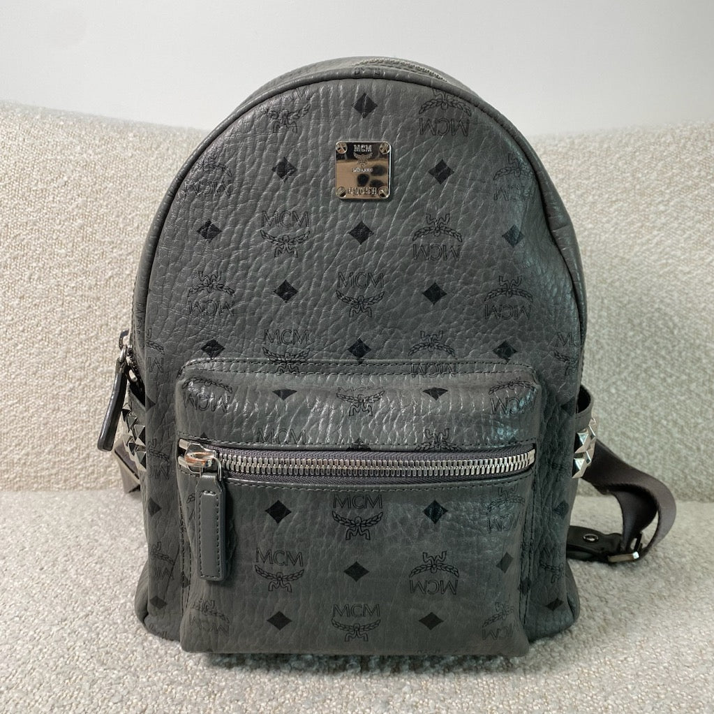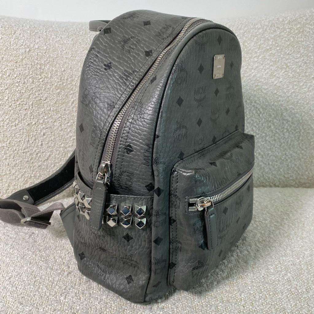 Pre-owned MCM Visetos Stud Stark Backpack Phantom Grey