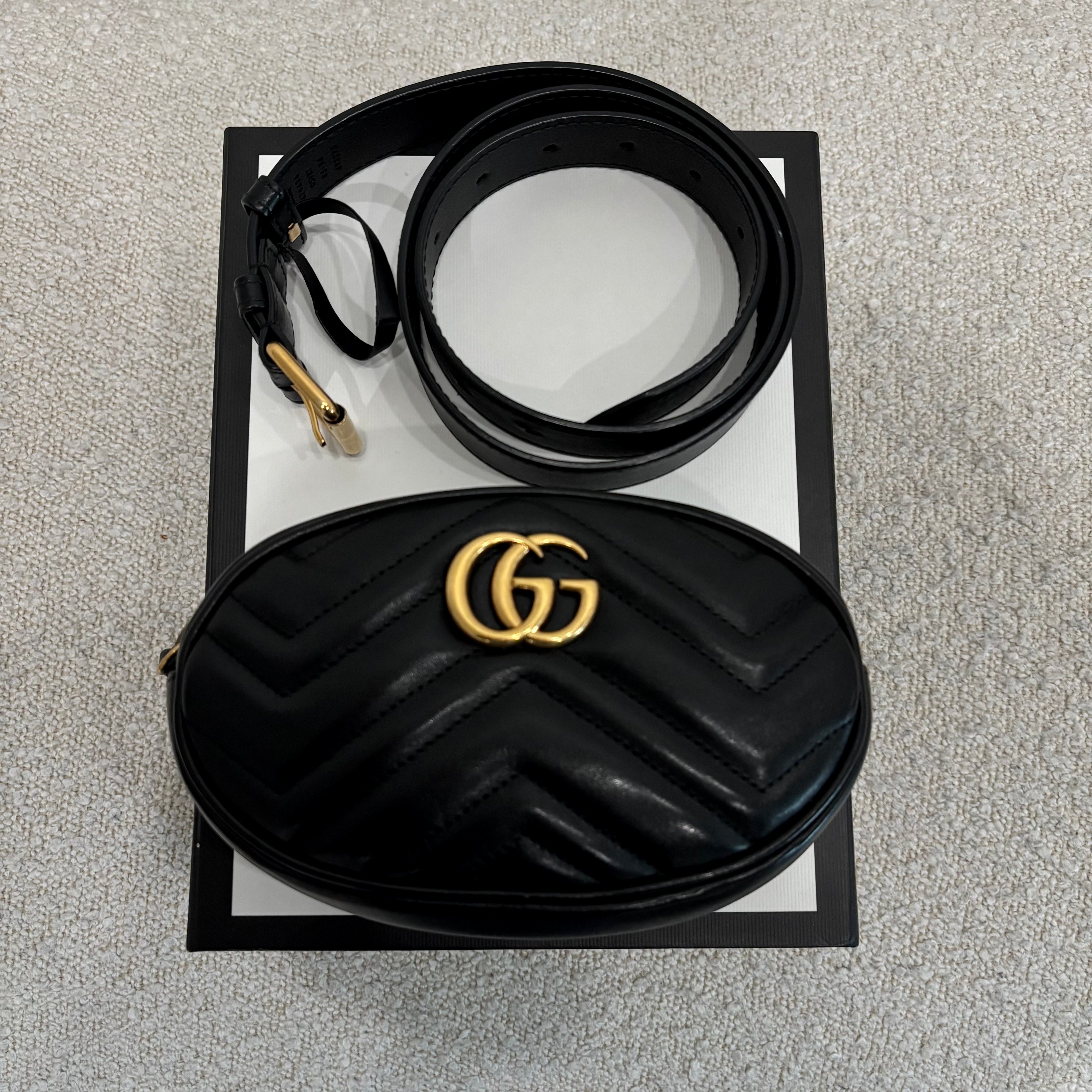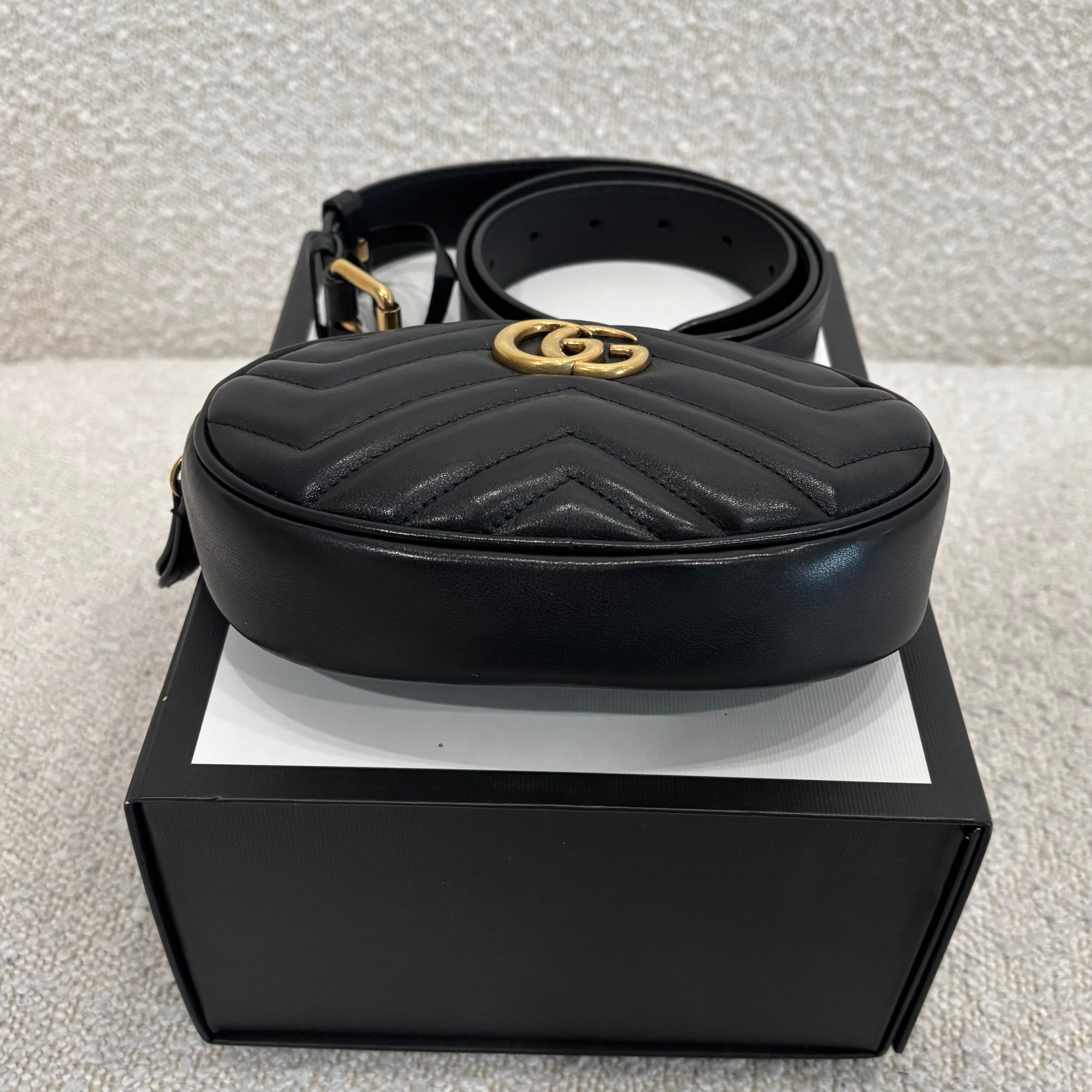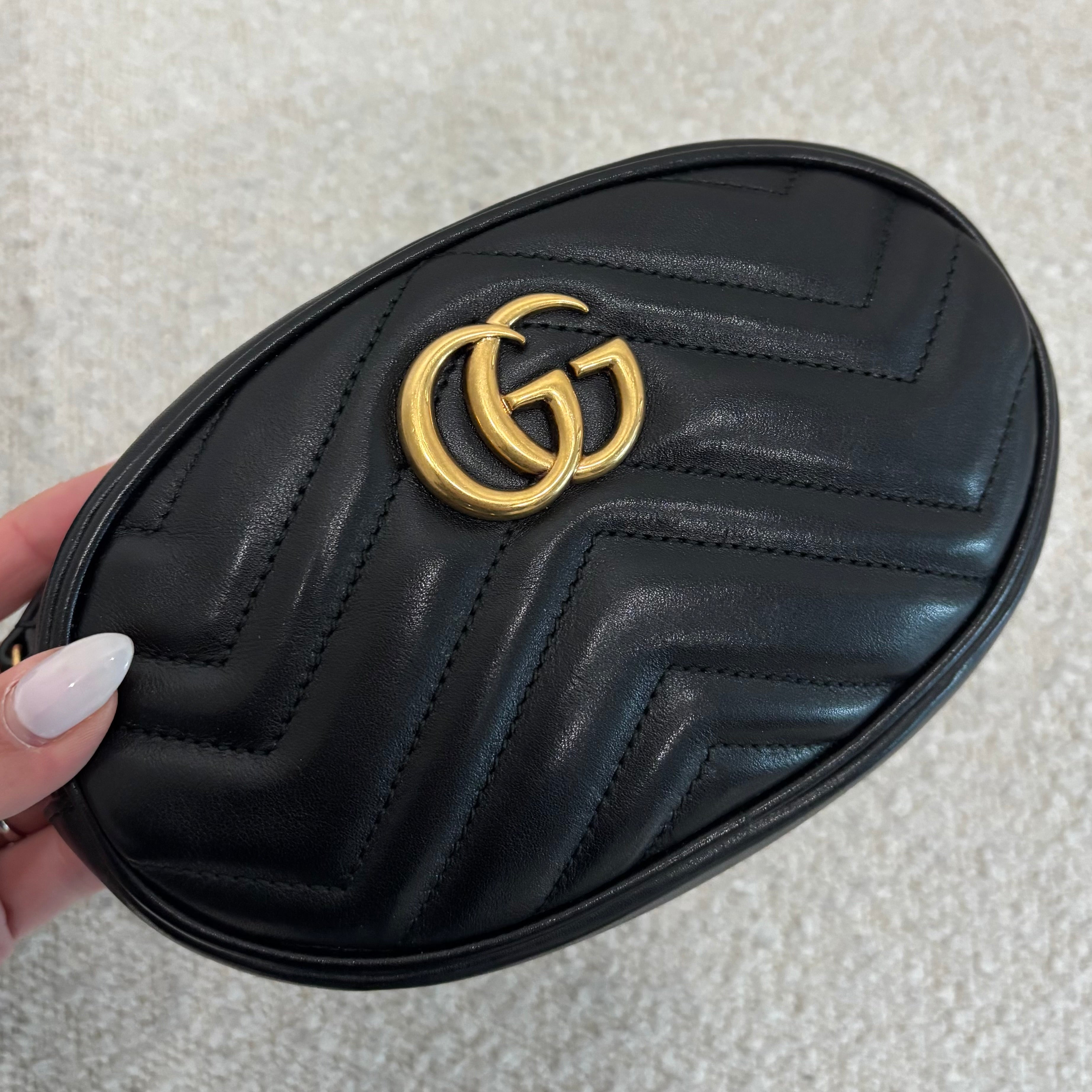 Pre-owned Gucci Marmont GG Black Belt Bag Size 85 / 34