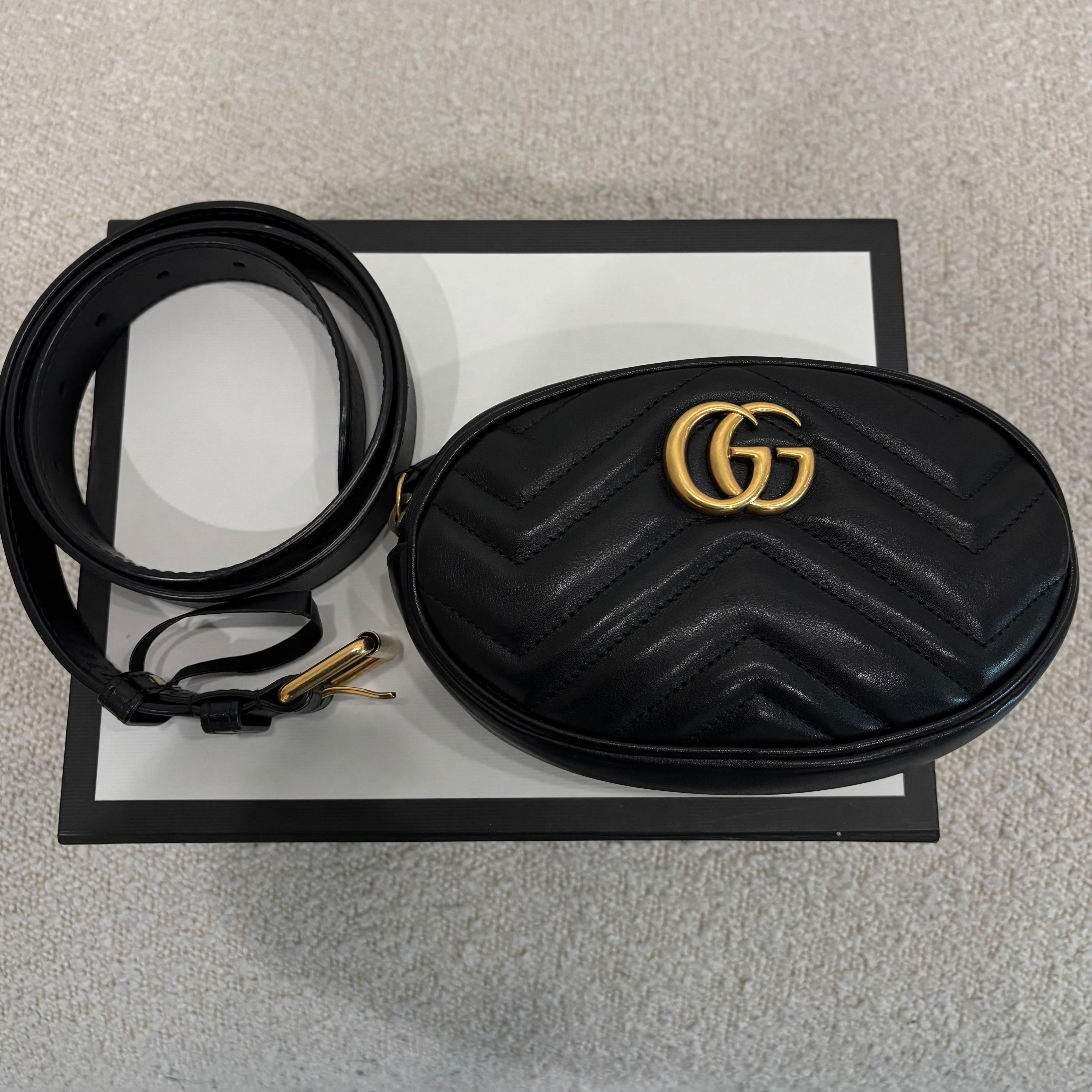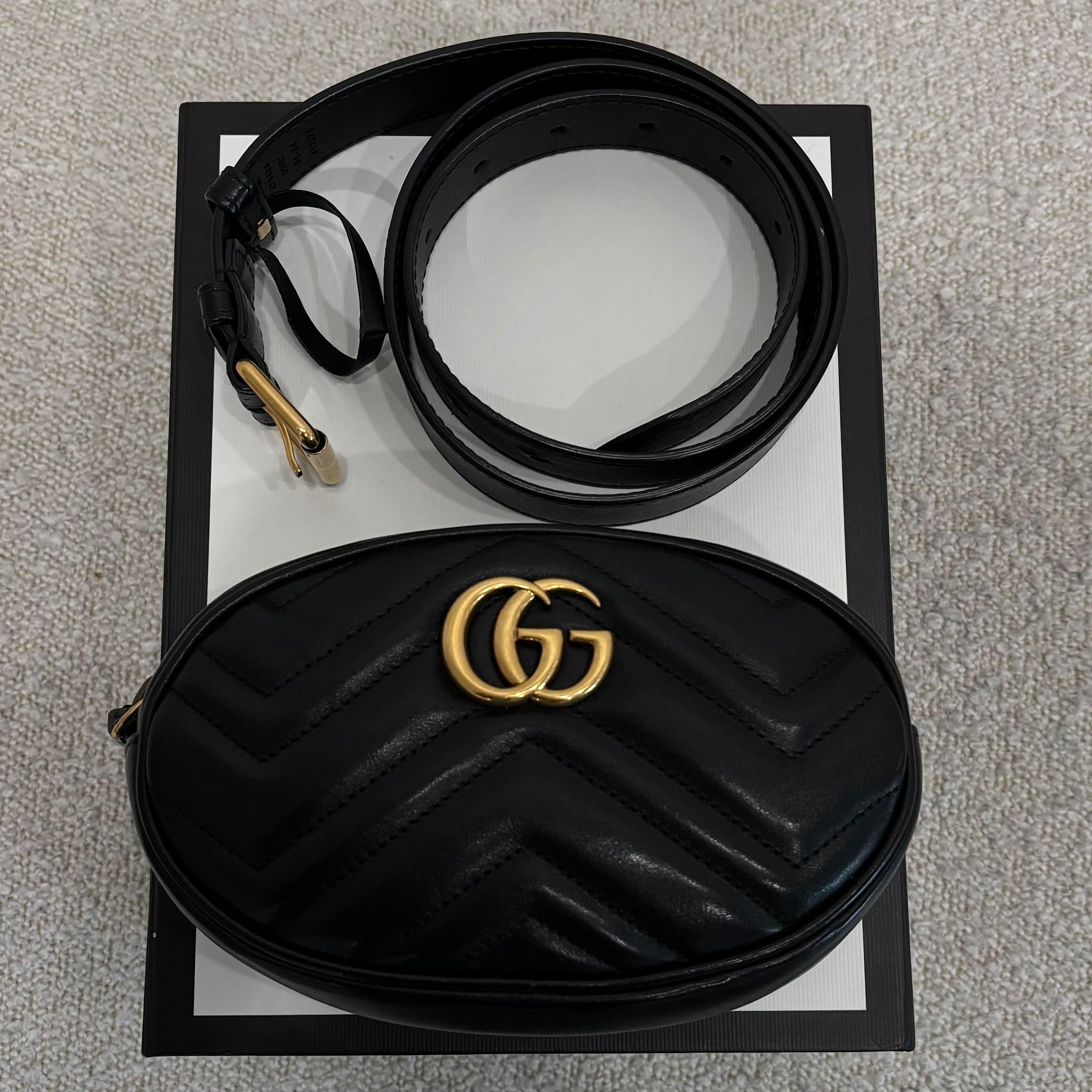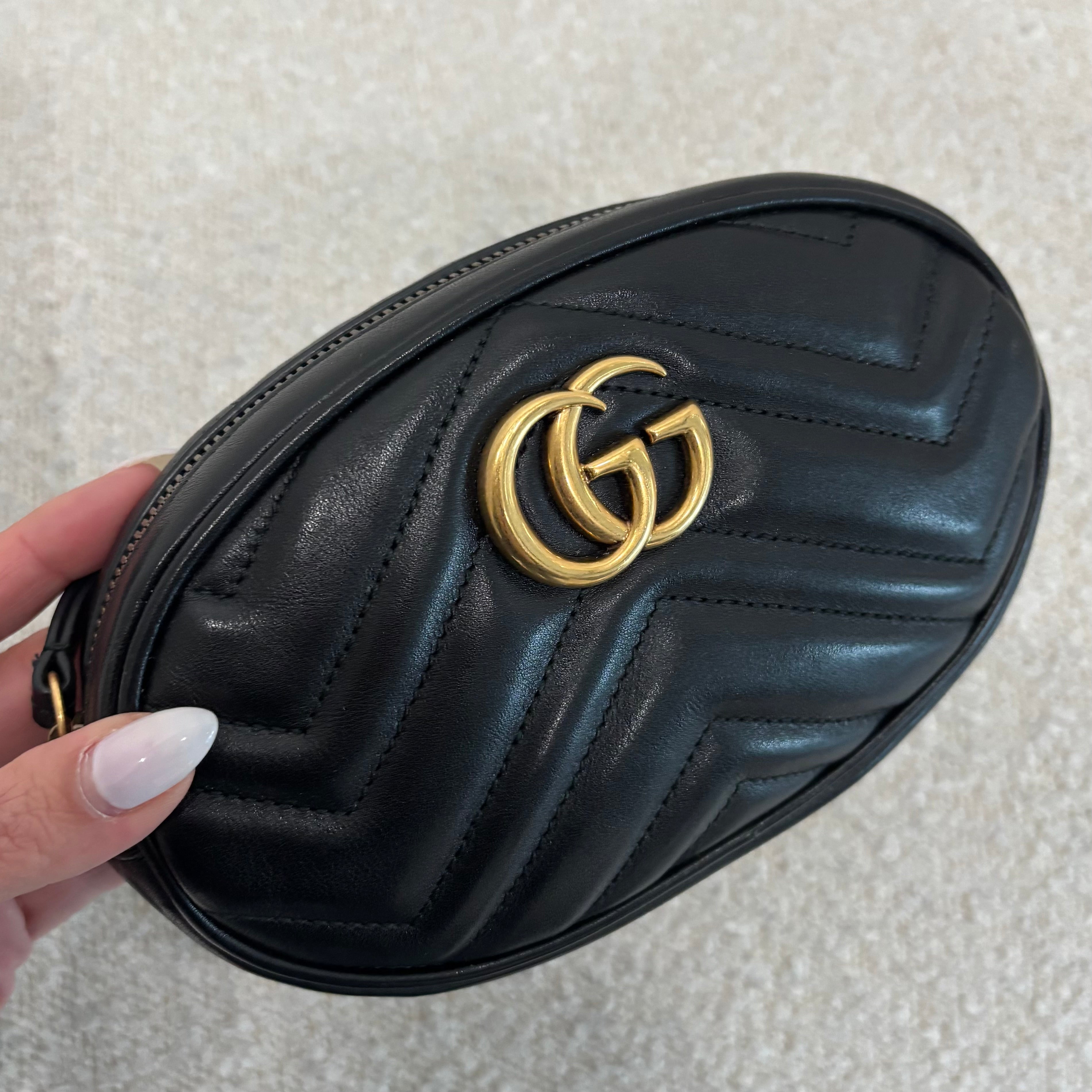 Pre-owned Gucci Marmont GG Black Belt Bag Size 85 / 34