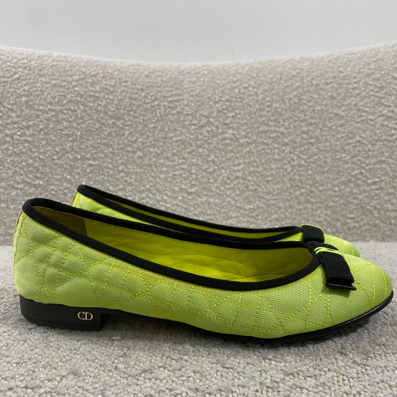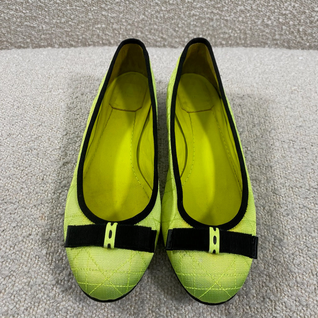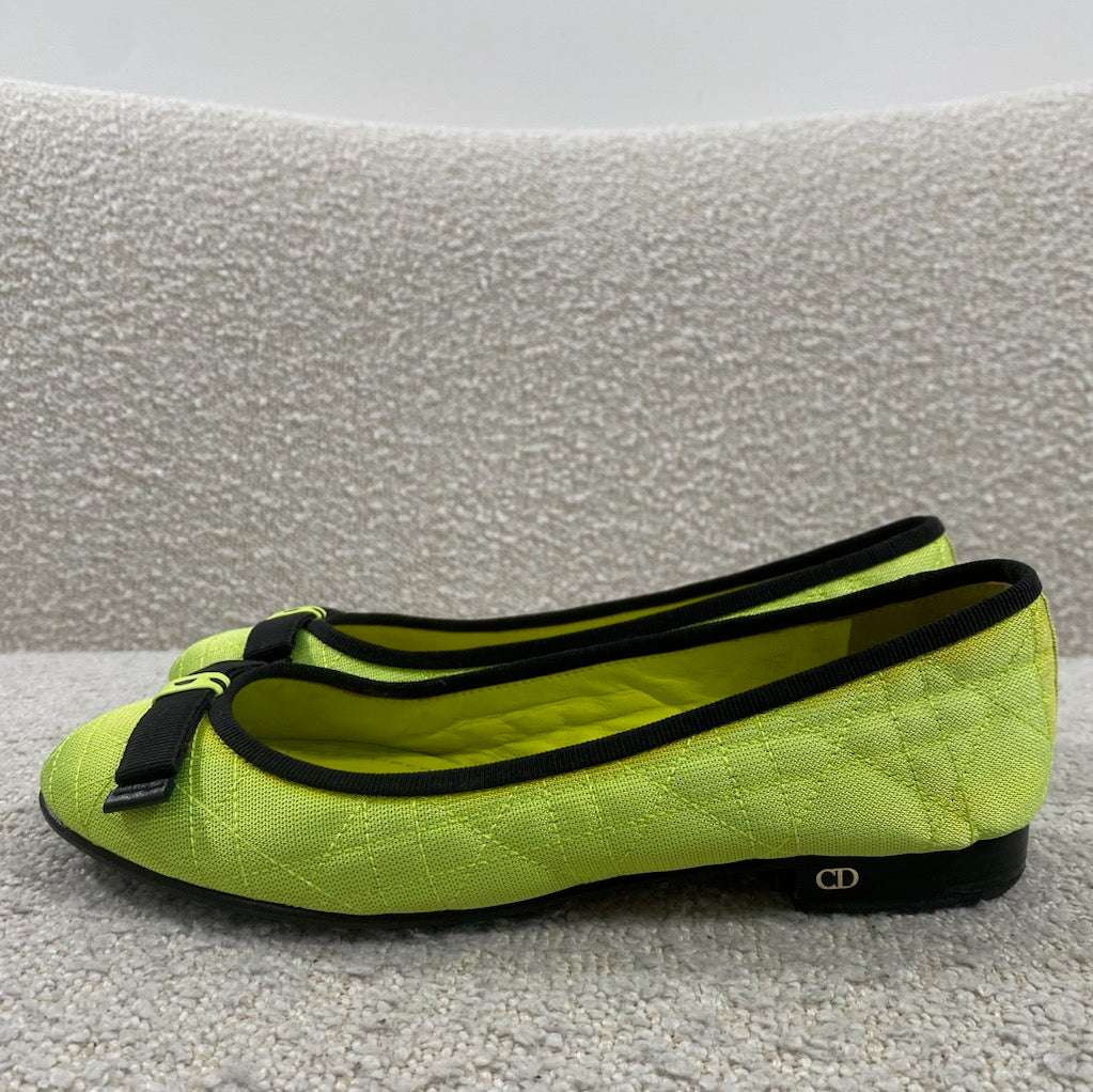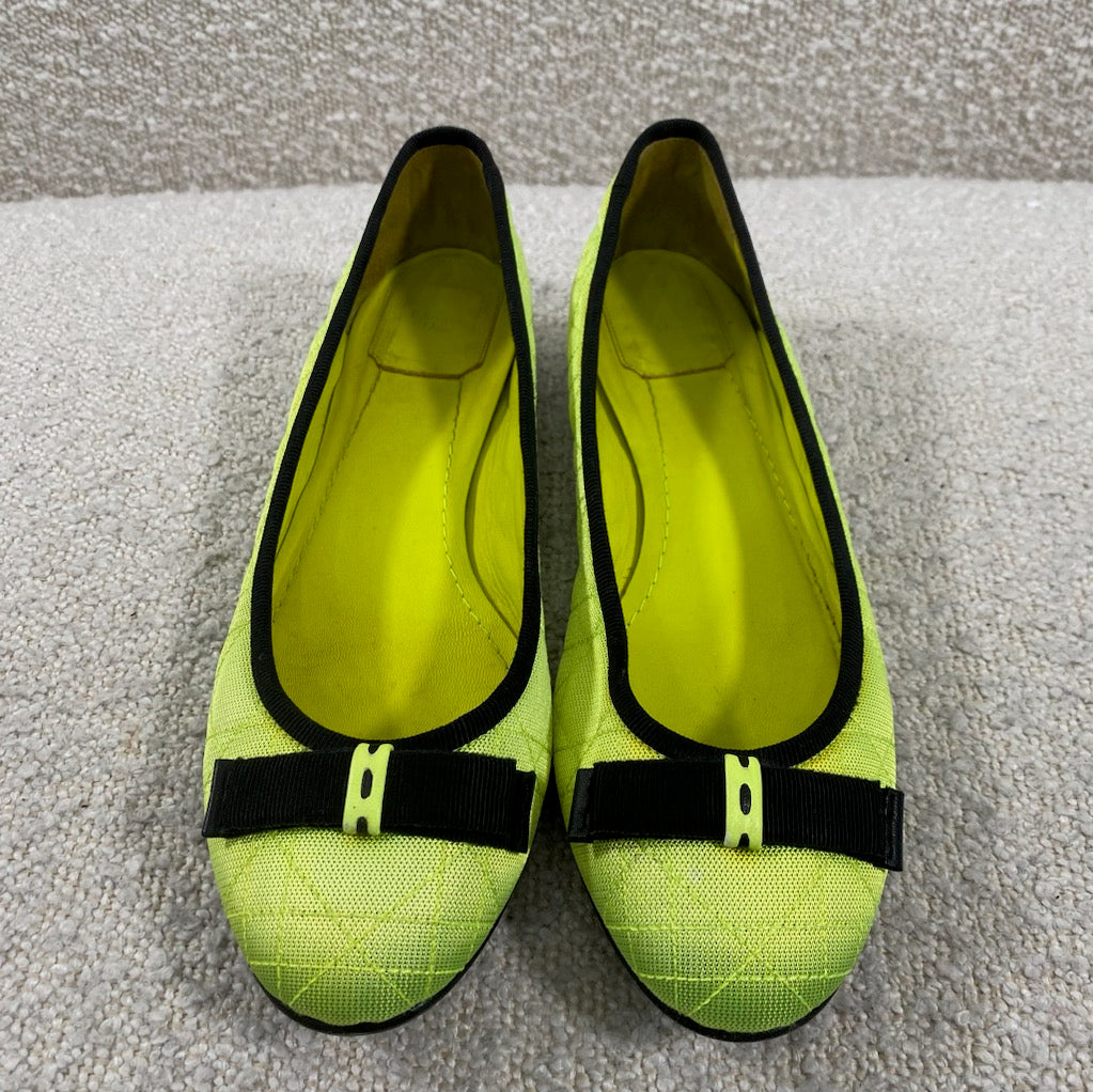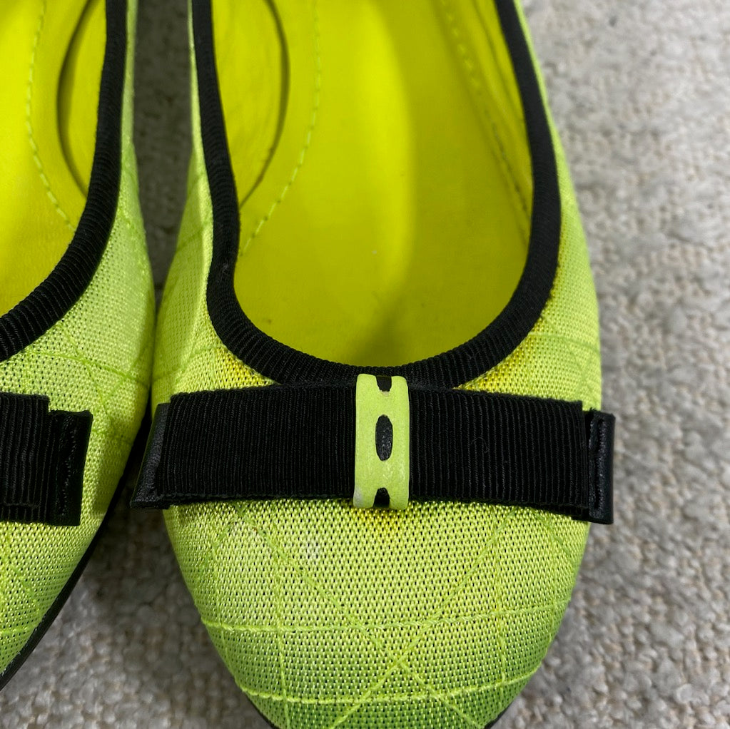 Pre-owned Dior Neon Cannage Quilted Textile Ballerina Flats Size 7.5